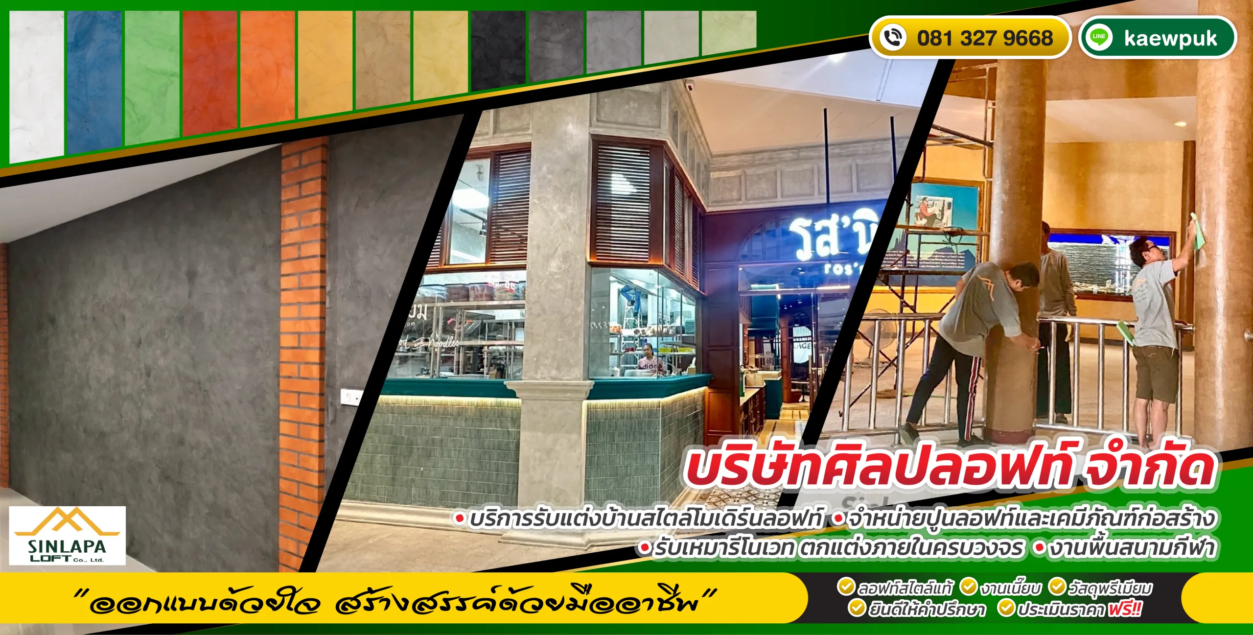 ผู้เชี่ยวชาญด้านการออกแบบและตกแต่งบ้านสไตล์โมเดิร์นลอฟท์แบบครบวงจรให้บริการจำหน่ายปูนลอฟท์และเคมีภัณฑ์ก่อสร้างคุณภาพสูงพร้อมงานรับเหมาตกแต่งภายใน รีโนเวทอาคารและติดตั้งพื้นสนามกีฬาทุกประเภท ด้วยทีมงานมืออาชีพที่มีประสบการณ์มุ่งมั่นในการสร้างสรรค์งานที่ตอบโจทย์ทั้งด้านฟังก์ชันและความงามเพราะทุกพื้นที่คือแรงบันดาลใจ เราจึงใส่ใจในทุกรายละเอียด